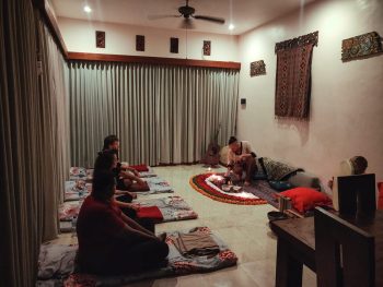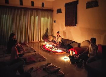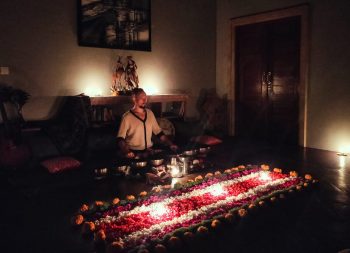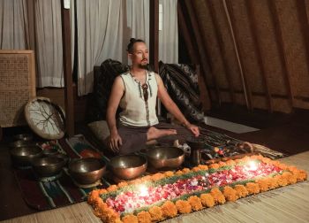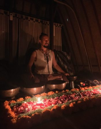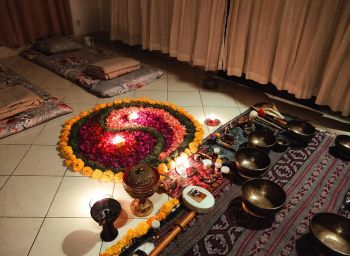 В течении ночи целители проводят саундхилинг (звуковую терапию) с использованием Тибетских поющих чаш. Это позволяет участником максимально комфортно погрузиться в свои внутренние процессы и проживать их. Также поются особые целительные песни под гитару и звуки шаманского бубна.
