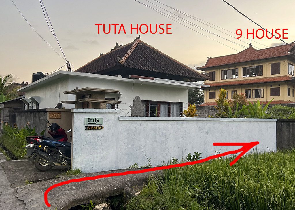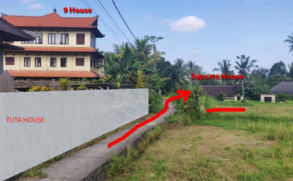 Далее по прямой проезжаете 400 метров до «TUTA HOUSE». Перед домом поворачиваем направо, проезжаем мимо «9 House» и снова поворачиваем направо. Ближайший дом наш — «Suparta House».