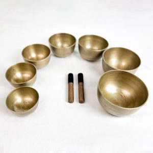 Small Singing Bowls Golden Carving Set (7 bowls) (10-15 cm, 3.7 kg)