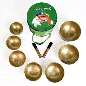 Small Singing Bowls Golden Carving Set (7 bowls) (10-15 cm, 3.7 kg) quantity